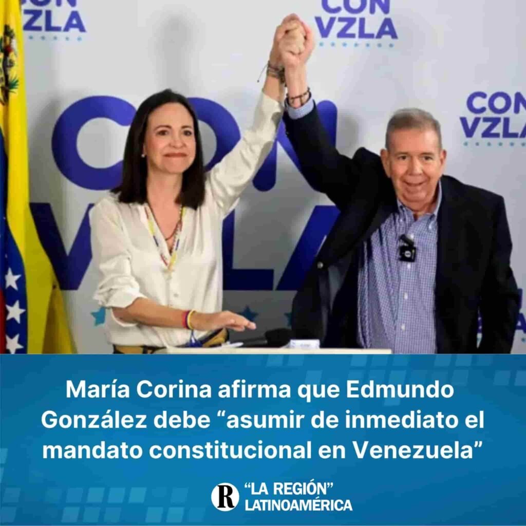 Además, la líder opositora subrayó que Edmundo González Urrutia debe asumir como el «legítimo presidente de Venezuela» a raíz de las elecciones del 28 de julio de 2024 y ser reconocido como comandante en jefe de la Fuerza Armada Nacional por todos los oficiales y soldados que la integran.